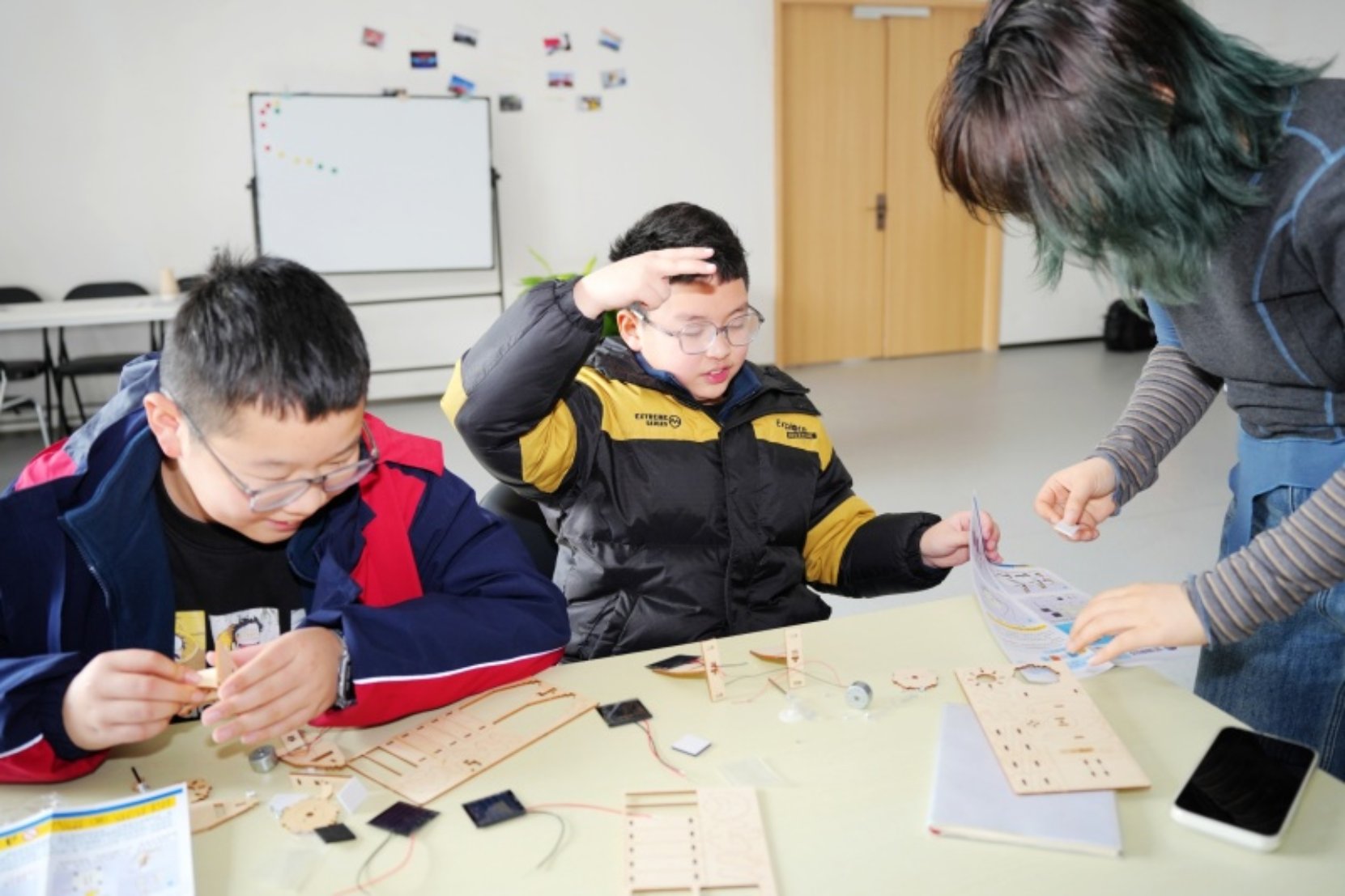 活动中,同学们还有幸走进紫微科技飞船智能智造基地,开启了一场充满未来感与趣味性的科技探秘之旅。在基地工作人员的专业讲解与引导下,同学们近距离观察、触摸真实的航天试验器,一步步揭开“中国智造”背后的硬核科技密码,真切感受我国航天事业的蓬勃发展与强大实力。参观结束后,大家化身“小小航天工程师”,亲手拼装“B300-L”货运飞船模型,从认识太阳能帆板的功能,到掌握模块化航天器的结构,每一个步骤都充满好奇与专注,在动手实践中解锁航天知识、锤炼动手能力。此外,在“太空农夫”特色环节,同学们认真聆听讲解,深入了解宇宙射线诱发基因突变的科学原理,近距离感受航天技术与农业种植的奇妙结合,进一步激发了对科学探索的浓厚兴趣。