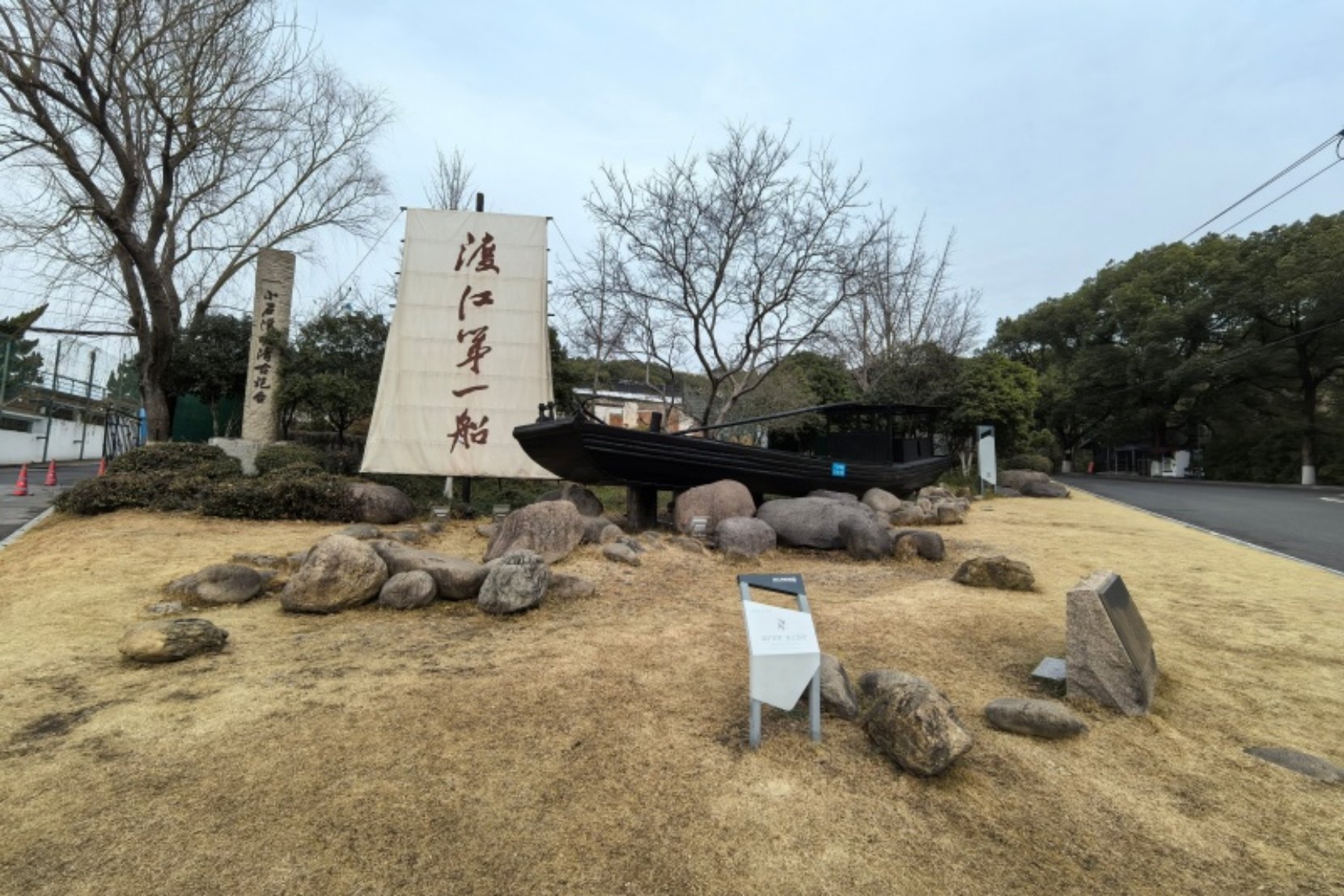 研学首日,同学们循着革命先辈的足迹,首先来到江阴“渡江第一船”纪念地,追忆那段烽火连天的峥嵘岁月。这里镌刻着一段不朽的历史:1949年4月20日,渡江战役的炮火划破长空,船工王小弟挺身而出,驾驶自家渔船,载着50余名解放军战士从苏北正东出发,在敌军密集的炮火封锁下,勇闯长江天堑、逆流而上。这艘普通的渔船,先后往返六次运送解放军战士,用船桨划出了胜利的航线,为渡江战役的胜利立下汗马功劳,被光荣授予“渡江英雄第一船”的称号。站在复原的木船前,船身上模拟的弹孔依稀可见,仿佛仍在诉说着当年的浴血奋战;抚摸着斑驳的船体,同学们仿佛穿越时空,耳畔再次回响着70多年前“打过长江去,解放全中国”的震天呐喊。这艘平凡的渔船,承载着不平凡的功勋,它不仅是渡江战役的“先锋号”,更是军民同心、不畏艰险、奋勇争先的革命精神的生动象征。同学们在船前驻足合影,研学老师以实景为课堂,生动讲述渡江战役的历史细节与英雄故事,引导大家在参观聆听后展开热烈讨论,让红色记忆深深扎根心底。