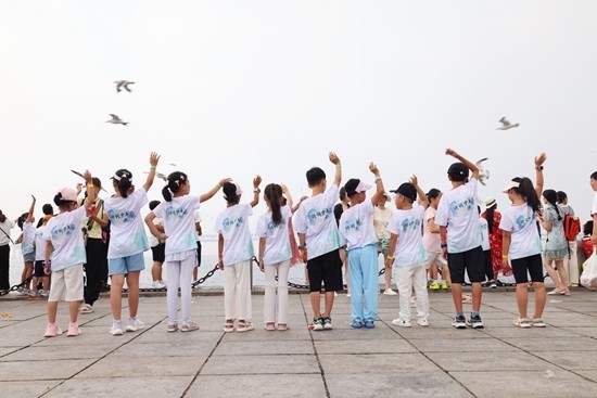 诗词少年在大连星海广场研学。受访者供图