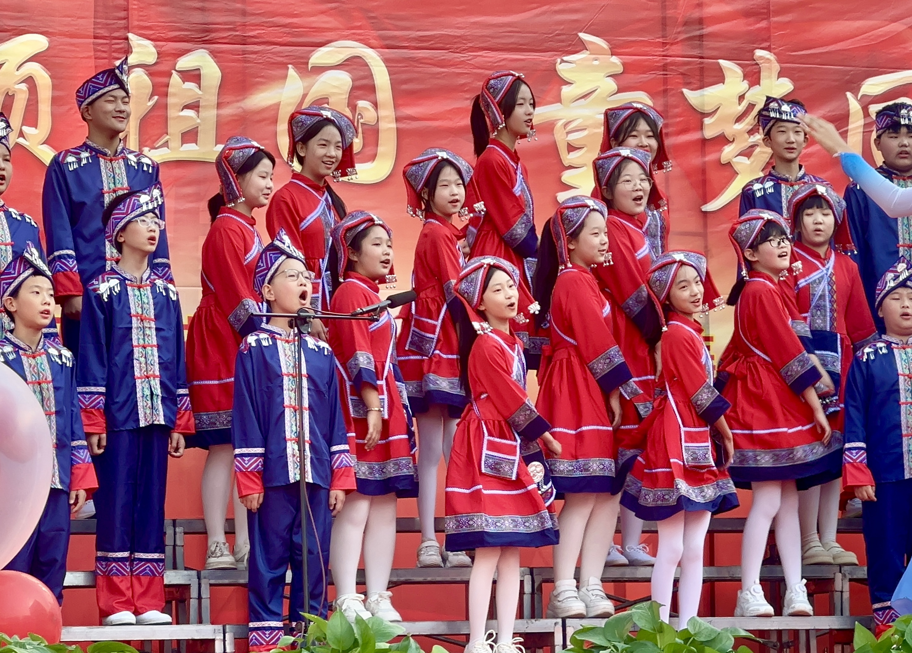 活动现场红旗漫卷,歌声嘹亮。该校各班依次登场,用饱满的热情和嘹亮的歌声表达对祖国的深情祝福——《共产儿童团团歌》展现了少年的朝气与传承,《卢沟谣》《龙的传人》等歌曲则抒发了对民族历史与文化的深刻认同,《我和我的祖国》《我爱你中国》旋律悠扬,情感真挚,《国家》《灯火里的中国》唱出了对国泰民安、万家灯火的赞美……最后,《强军战歌》将活动推向高潮。同学们高亢激昂的歌声充分展现了新时代少年儿童蓬勃向上、爱国爱党的精神风貌。