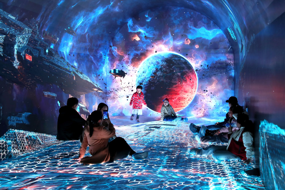 2025年4月4日,游客在辽宁朝阳市1958科学乐园体验时空隧道。1958科学乐园由朝阳水泵厂老厂房改造而成,以建设“工业文明记忆 智慧城市客厅”为目标打造,赋予老厂区新内容、新内涵。
