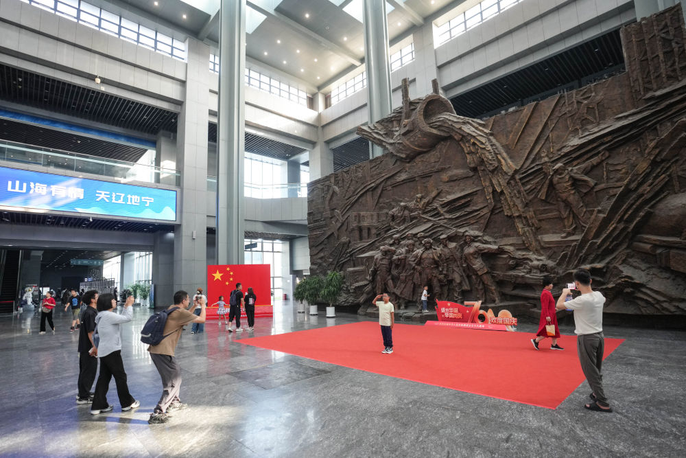 2025年10月1日,游客在中国工业博物馆参观、拍照。
