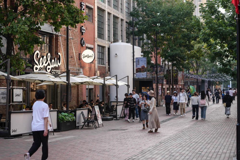 2025年10月1日,游客在沈阳红梅文创园游览。