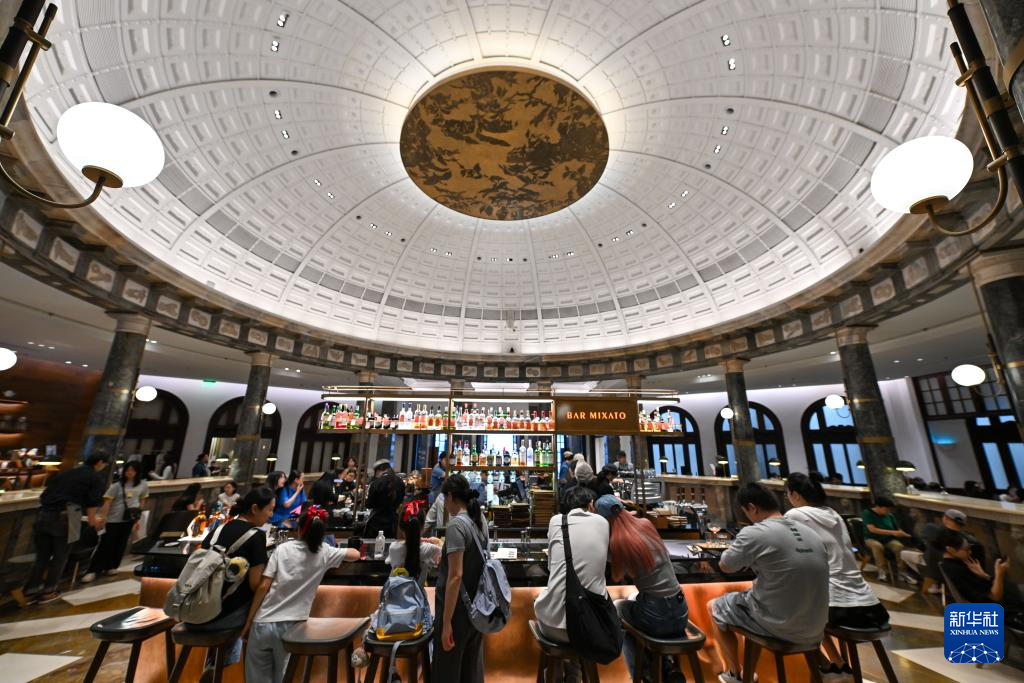 10月1日,顾客在星巴克天津旗舰店内消费。