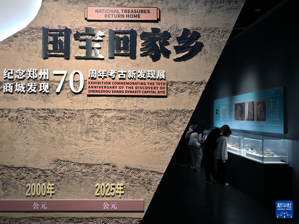 10月3日,观众在郑州商代都城遗址博物院参观“国宝回家乡——纪念郑州商城发现70周年考古新发现展”。