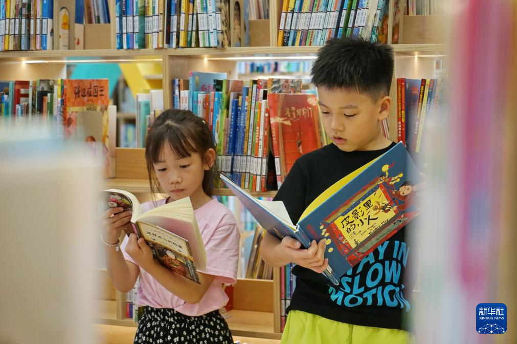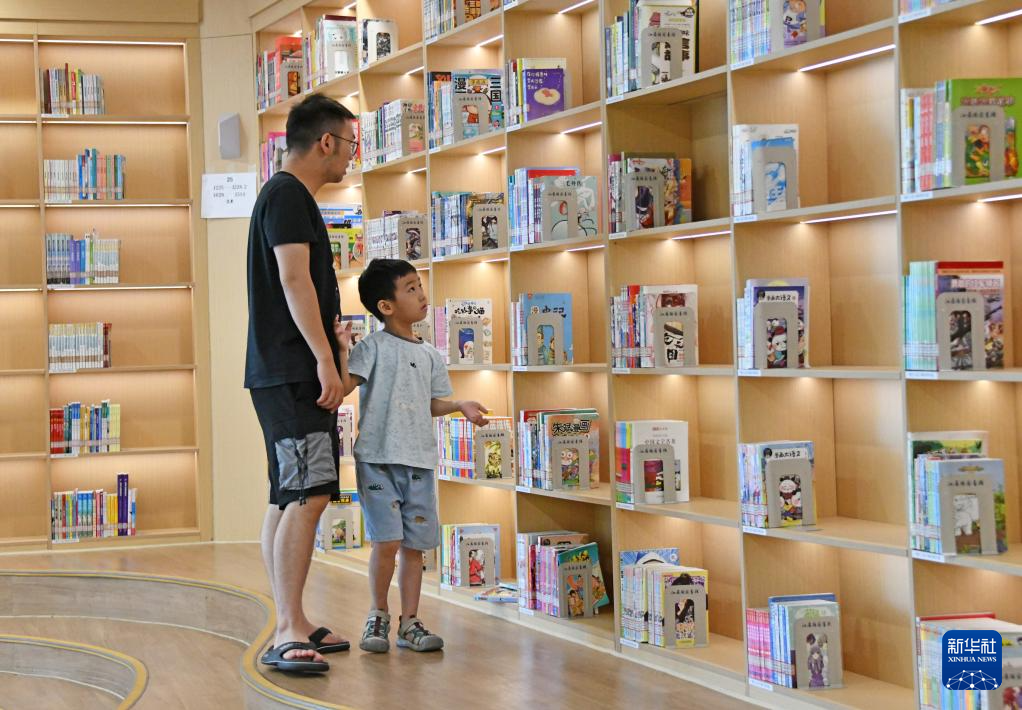 10月3日,小朋友在浙江省嘉兴市南湖区南湖图书馆读书。