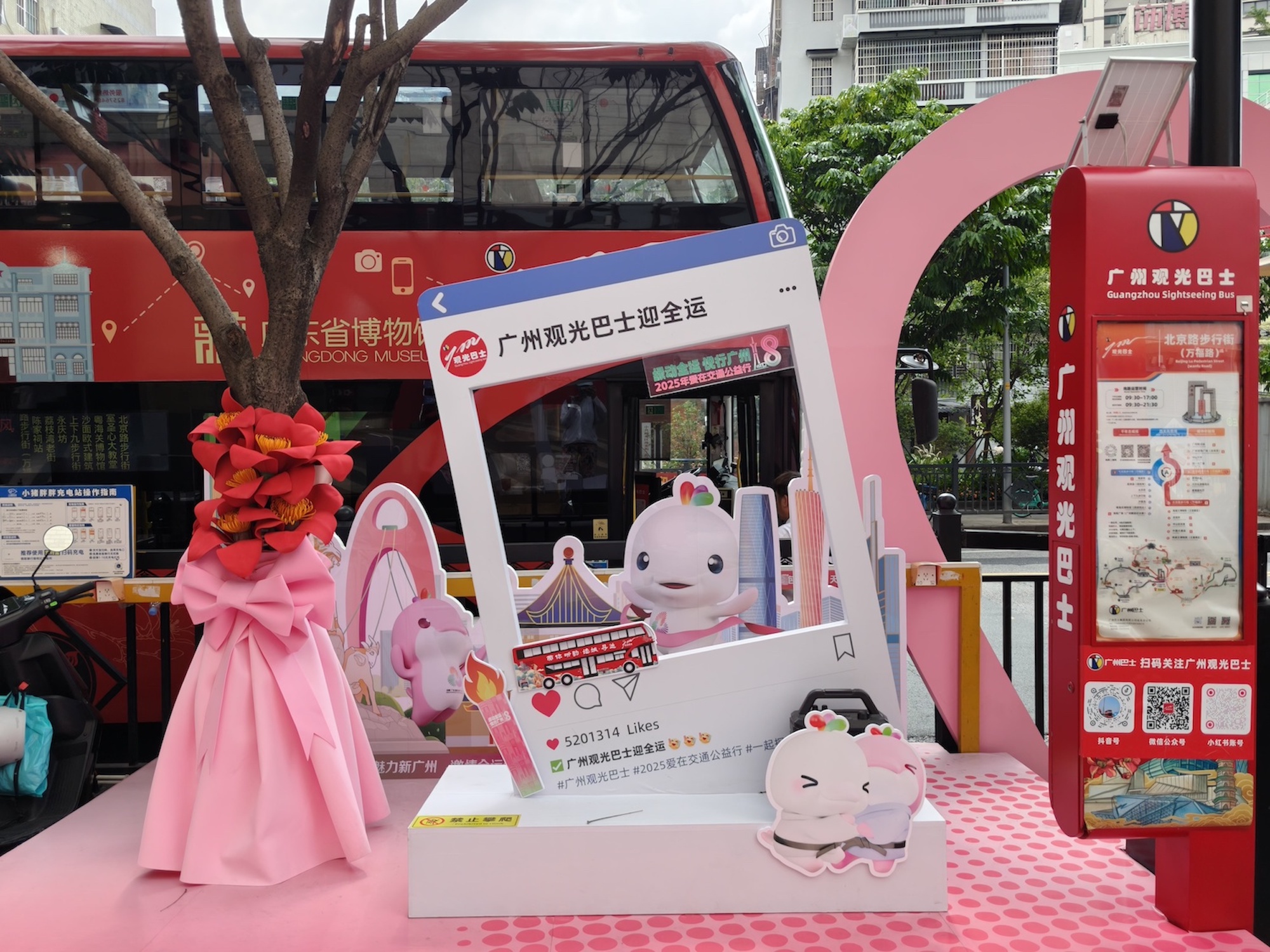 10月10日,广州观光巴士北京路站充满十五运会元素。实习生 刘玄摄