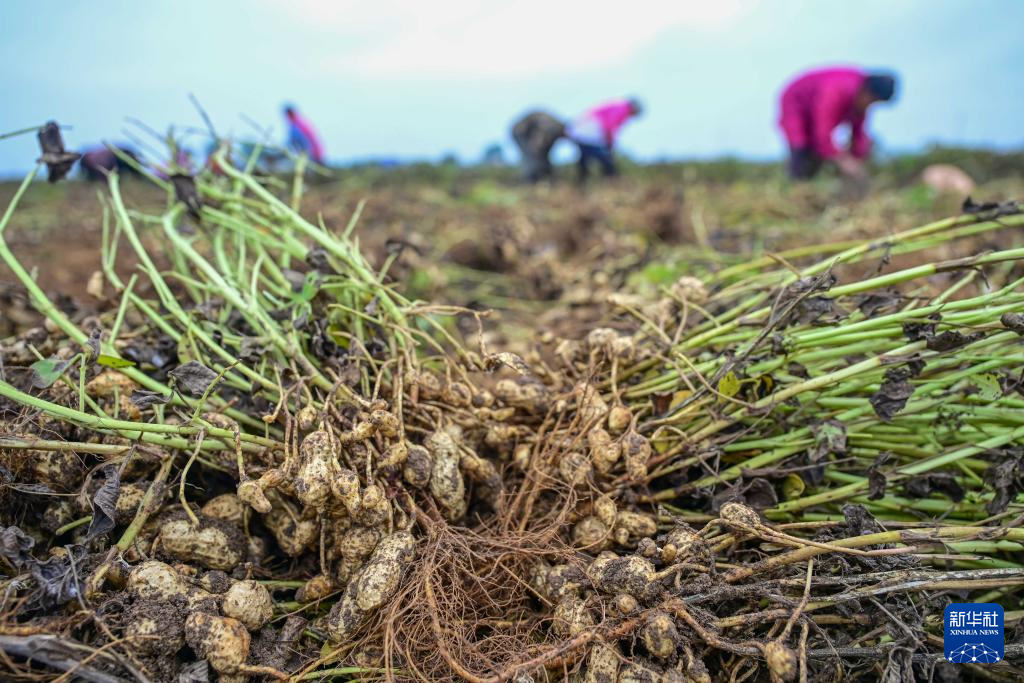 10月11日,河南省洛阳市瀍河区白马寺镇翟泉村农民在收获花生。