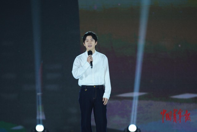 10月12日晚,江苏南京,“把青春华章写在祖国大地上”活动现场,中国煤矿文工团演员刘昊然现场寄语河海大学学生。刘昊然表示,我们不妨把人生当成一场对生命的塑造,去学习、体验,去尝试、修正,每一次选择,每一次努力,都是在塑造属于自己的角色。不要害怕失败,也不要害怕平凡。正是无数平凡的坚守汇聚成了改变时代的洪流。中青报·中青网记者 田嘉硕/摄
