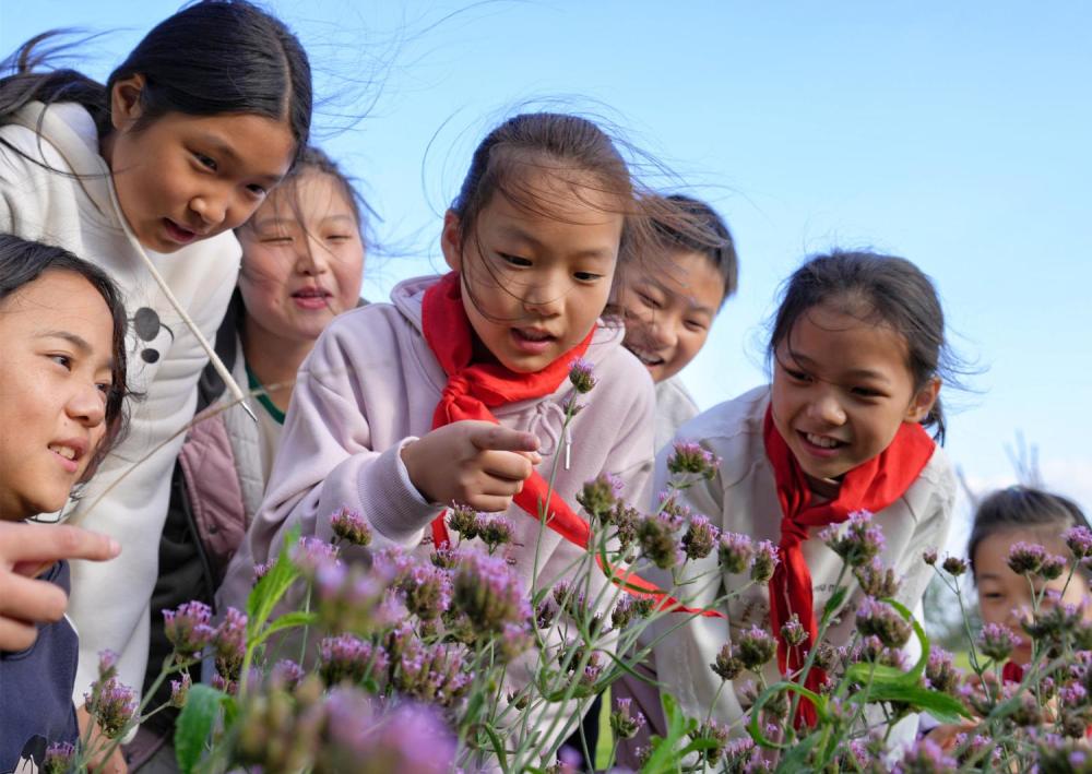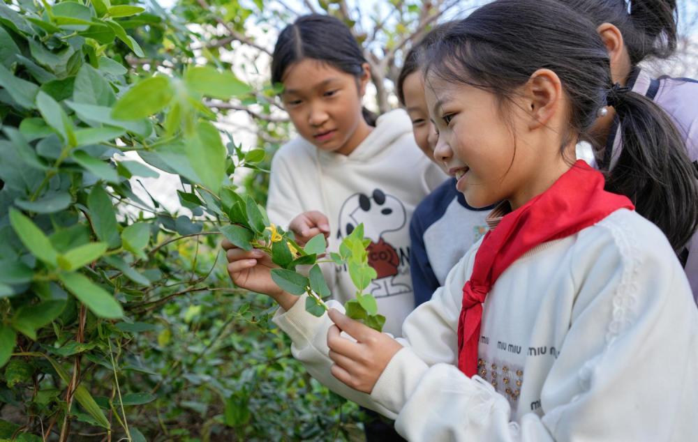2025年10月22日,江苏省海安市墩头镇吉庆小学组织学生来到校外药用植物园,学习了解中草药的用途和功效,进而增强学生对中医药的认知,激发他们对中医药传统文化的兴趣和热爱。通讯员 周强 摄