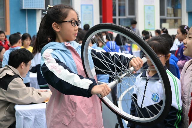 学生在项目体验中探究旋转轮里的科学原理。雷程锦 摄
