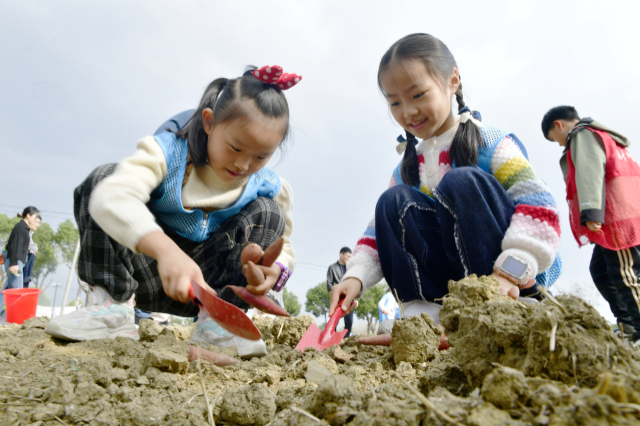 学生在体验挖红薯。通讯员 葛宜年 摄
