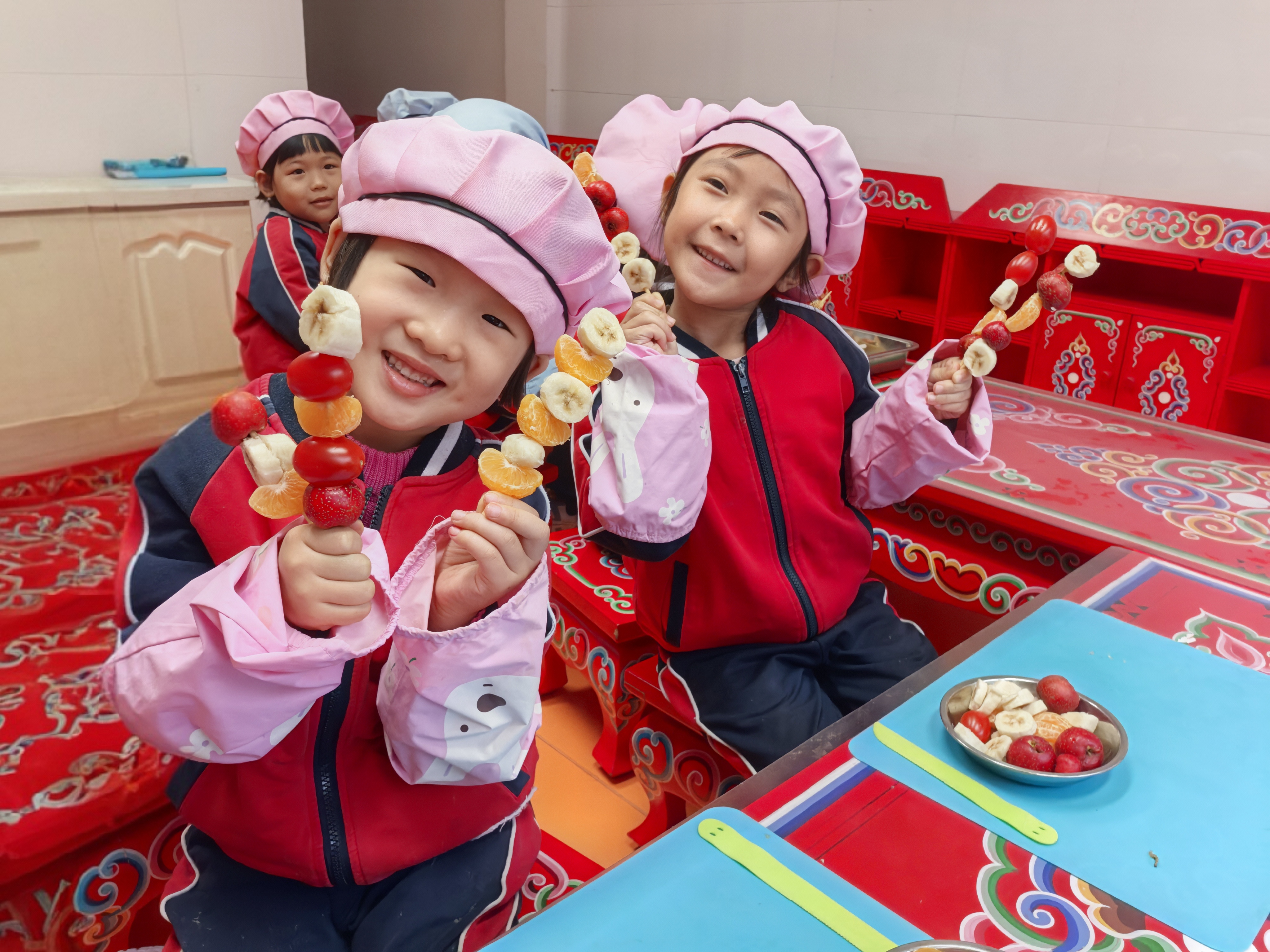 “小小美食家”们洗净小手,围坐桌前,将新鲜食材整齐排列,串出一串串精美的糖葫芦,孩子们在串制过程中相互帮忙、分享技巧,现场充满欢声笑语。待孩子们完成串制,老师们端出熬得晶莹剔透的糖稀,细心淋在水果串上。冷却后,一串串裹着亮泽糖壳的冰糖葫芦新鲜出炉,孩子们品尝着亲手制作的美味,满是自豪与喜悦。