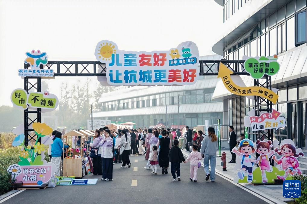 11月15日,在杭州市富阳区,家长带着孩子参加“儿童友好,让杭城更美好”主题活动。
