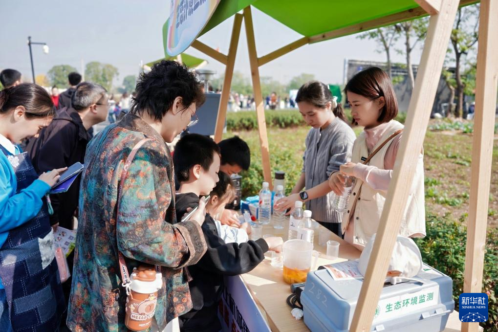 11月15日,在杭州市富阳区,孩子们在“儿童友好,让杭城更美好”主题活动中进行水质检测体验。