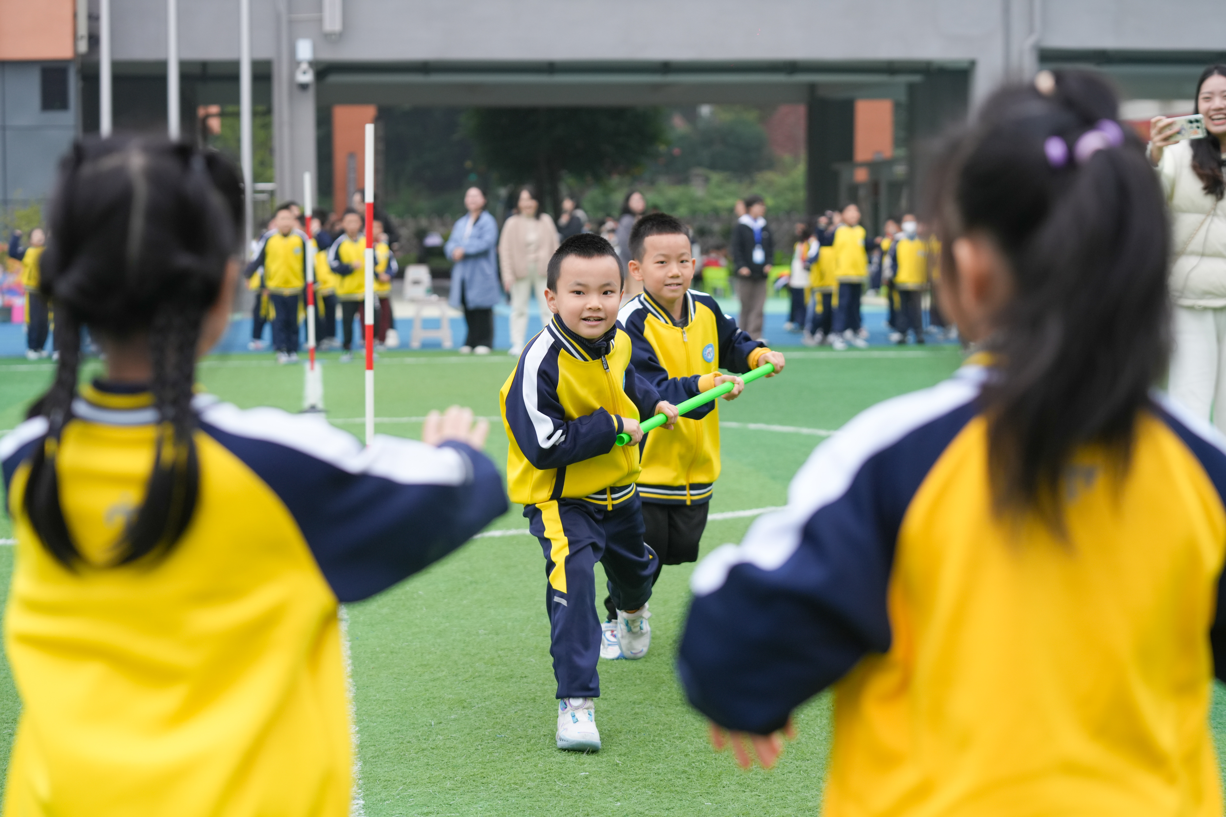 11月14日,重庆市北碚区勉仁小学举行以“我运动、我健康、我快乐”为主题的第四届趣味运动会,全校学生纷纷参与到障碍跑迎面接力赛、毛毛虫接力赛、赶小猪等趣味活动,大家在喜庆的氛围中乐享运动快乐,丰富学生户外体育运动,提高学生身体素质,促进学校体育工作的改革与发展。(中国教育报-中国教育新闻网通讯员 秦廷富 摄)