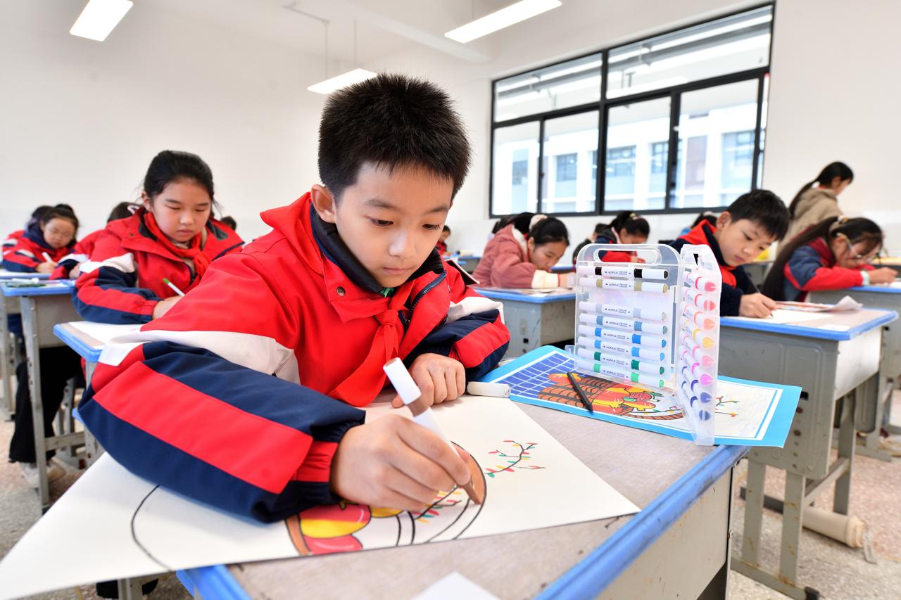 11月18日,湖北省襄阳市保康县中小学荆山艺术节美术展评活动在保康县后坪镇中心学校举行,来自全县34所中小学校的419名学生参加了书法、绘画、手工制作比赛。本次活动以“中国梦——少年行”为主题,设立幼儿、小学、初中、高中四个组别,通过“推荐报送+现场创作+集中展评”的方式评选奖项,鼓励学生积极参与艺术创作,助力学生提升美育素养与综合能力。(中国教育报-中国教育新闻网通讯员 杨韬 宋兴虎 摄)