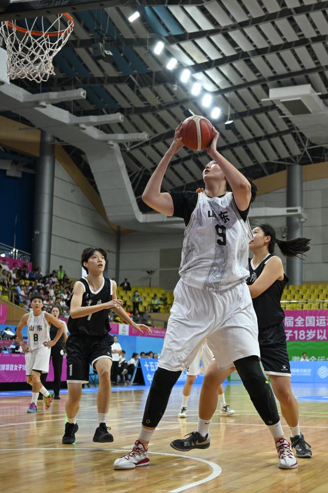 11月11日,山东队球员张子宇在女子篮球18岁以下组四分之一决赛中。新华社记者王松摄