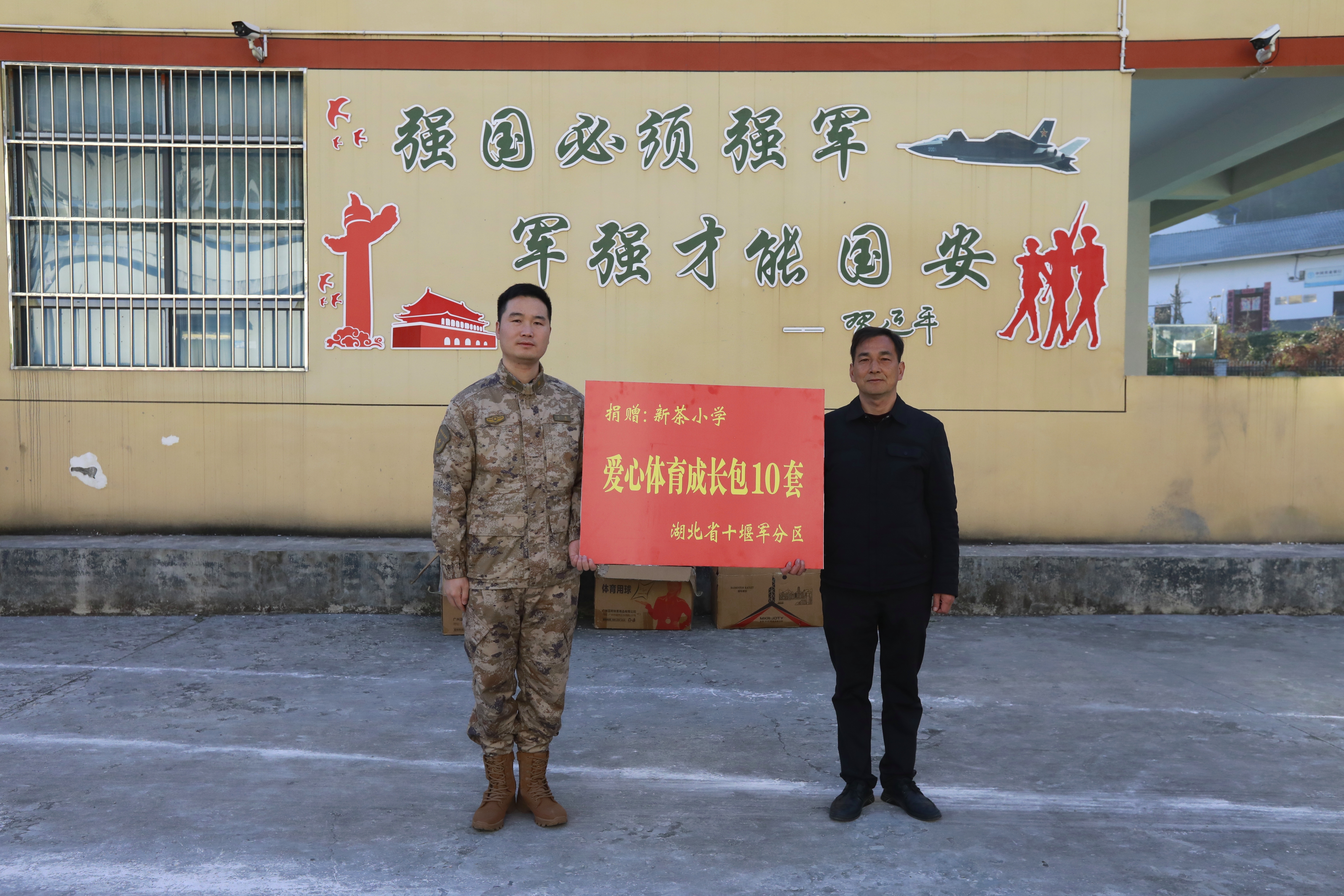 2021年12月31日,十堰军分区到新茶小学开展关爱青少年成长“暖冬行动”,为125名学生和26名教职工每人发放一套量身定制的棉服。同时还捐赠了“互联网+”安全书包、笔袋、彩铅、口罩等爱心大礼包150套,总价值8万余元。2023年10月11日,十堰军分区又为该校捐赠了140套装有笔袋等学习用品的爱心成长包。