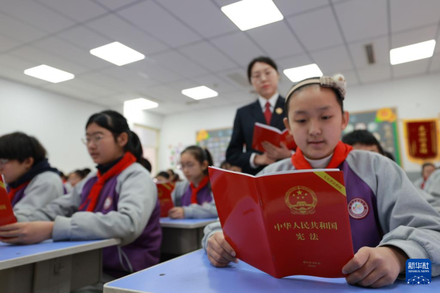 12月2日,甘肃省定西市安定区人民检察院的检察官在中华路学校进行宪法相关知识宣讲。新华社发(王克贤摄)