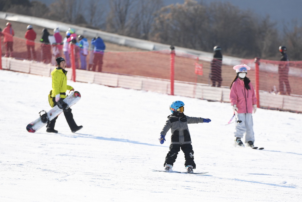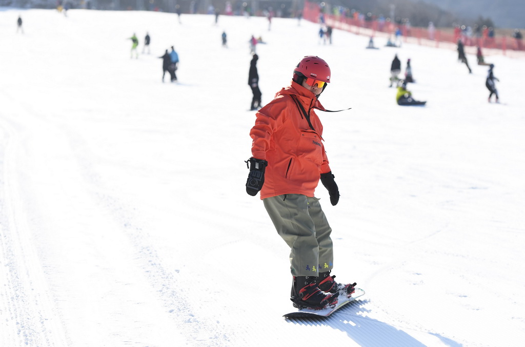 12月9日,市民在北京渔阳国际滑雪场滑雪。