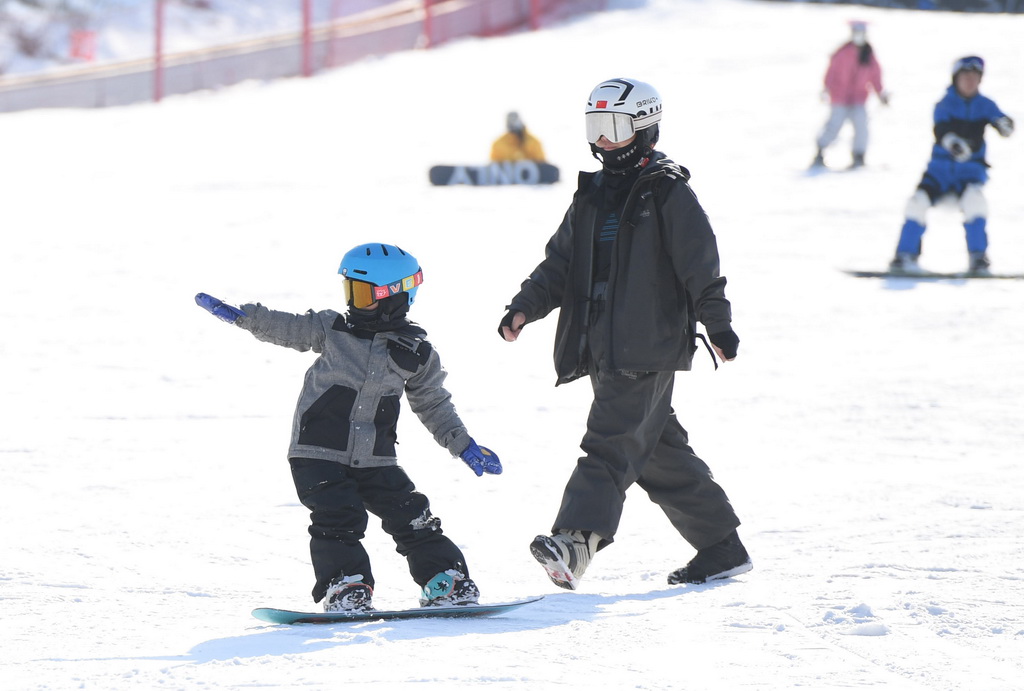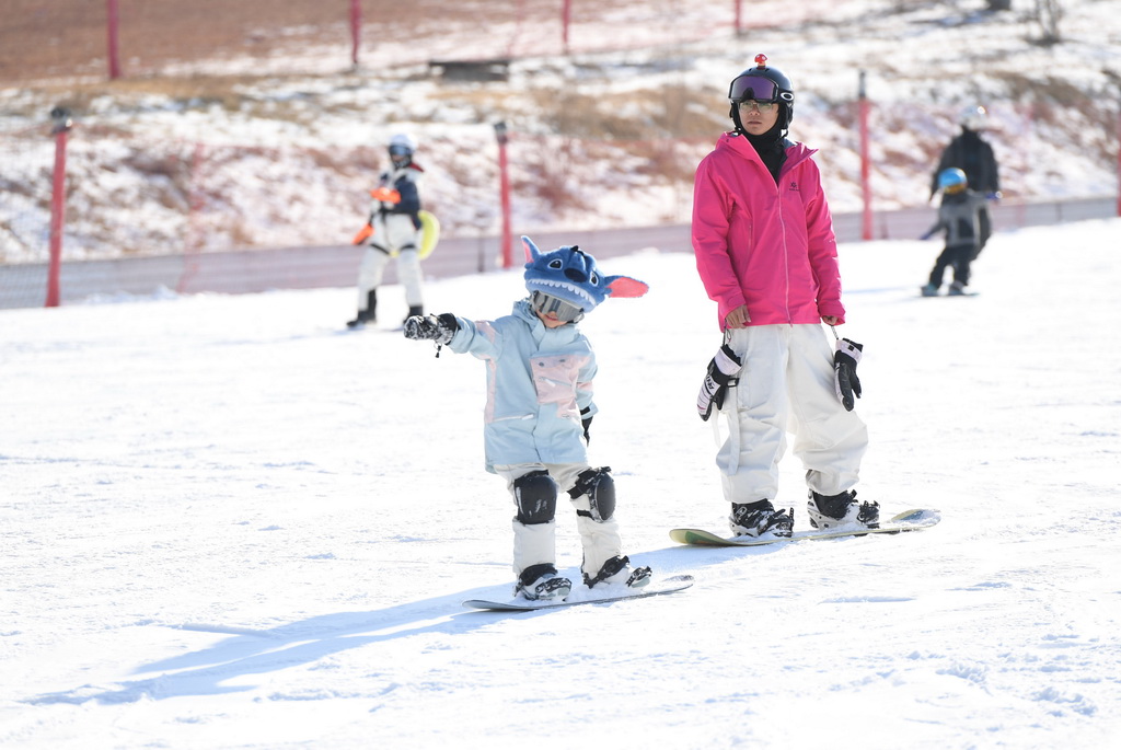 12月9日,市民在北京渔阳国际滑雪场学习滑雪。