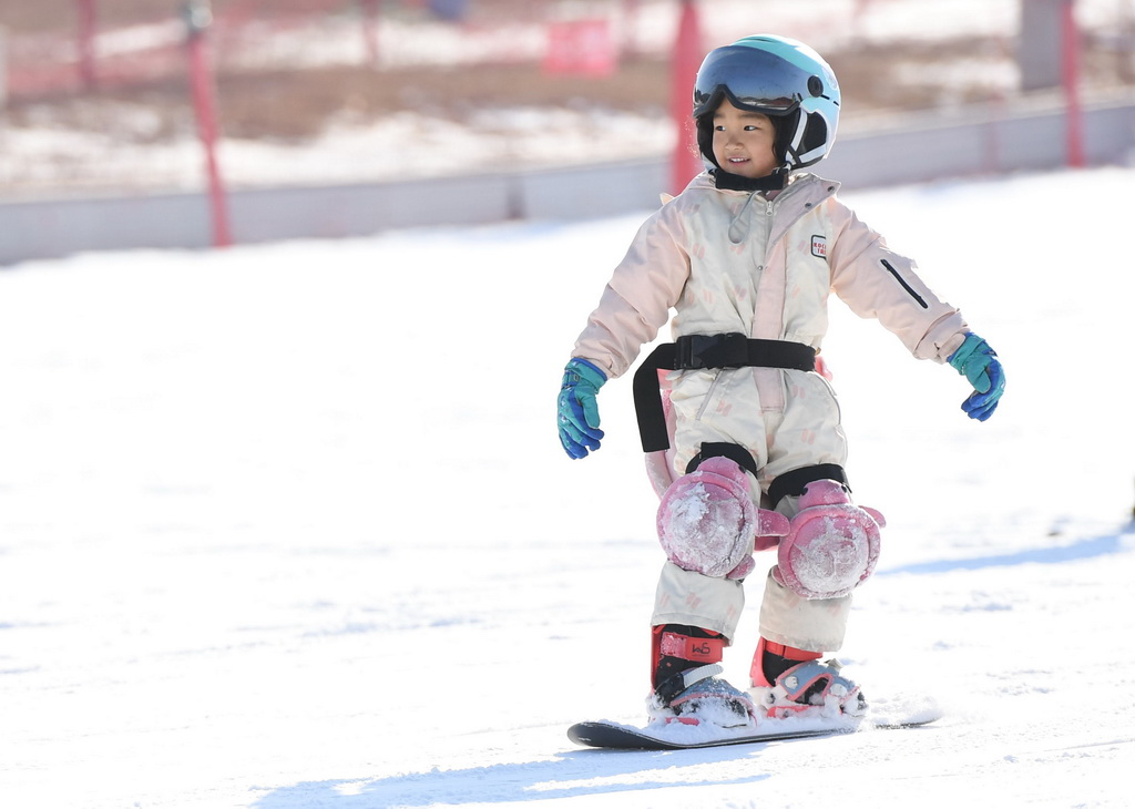 12月9日,一名小朋友在北京渔阳国际滑雪场滑雪。
