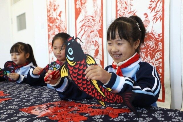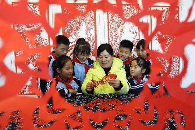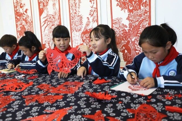 近年来,河北省唐山市丰润区李钊庄镇前蒲泊小学开展“非遗剪纸进校园”活动,安排精通剪纸技艺的教师,教授学生剪纸技艺,让孩子们感受传统文化的魅力。(中国教育报-中国教育新闻网 通讯员 朱大勇 摄)