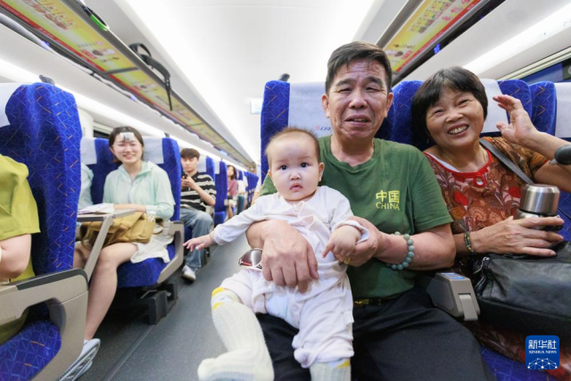 2023年9月28日,中国首条时速350公里跨海高铁——福厦高铁正式开通运营。这是在福厦高铁首趟复兴号智能动车组G9801次列车上,两名台湾女孩在与家人连线。