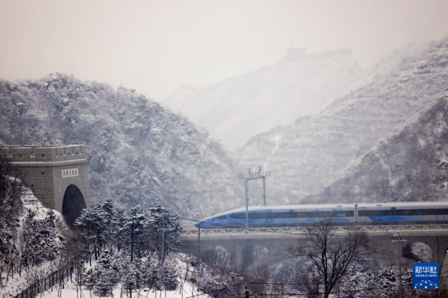 2022年1月21日,京张高铁列车经过居庸关隧道,从北京驶向太子城。