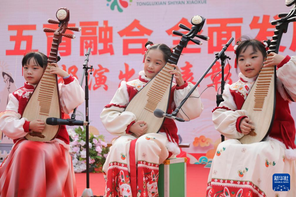 12月30日,浙江省杭州市桐庐县实验小学的学生用琵琶齐奏《四季歌》。