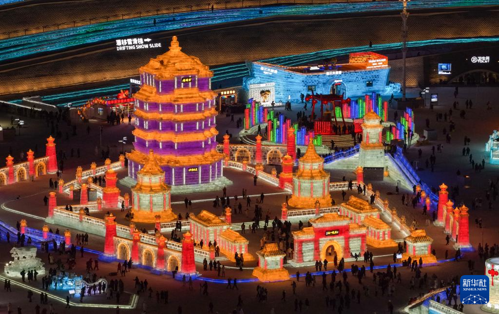 这是1月5日拍摄的哈尔滨冰雪大世界园区(无人机照片)。