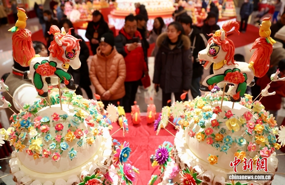 1月20日,中国非物质文化遗产馆在北京举办“过年——丙午春节系列主题展”。展览从春节承载的中华民族传统历法、生肖文化、粮食观和灯彩民俗等主题入手,串联百余项非物质文化遗产代表性项目,呈现多层次立体化的过年场景。展览将持续至3月20日(农历二月二、春分)结束。图为观众参观陕西省非遗代表性项目澄城面花作品《大鼓枣山》。该作品通高4.5米、直径3.6米,由18人团队历时1个月制成。
