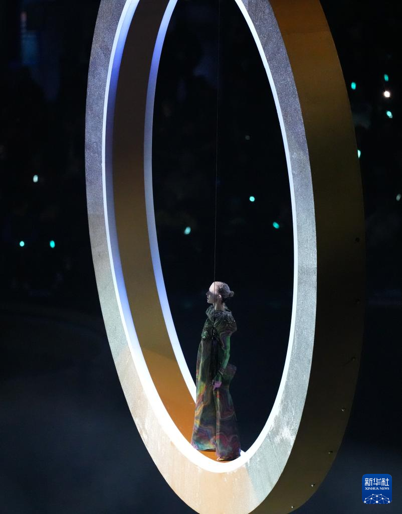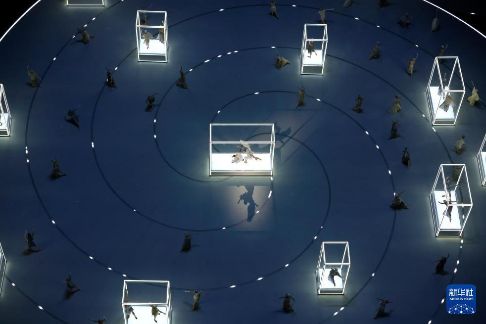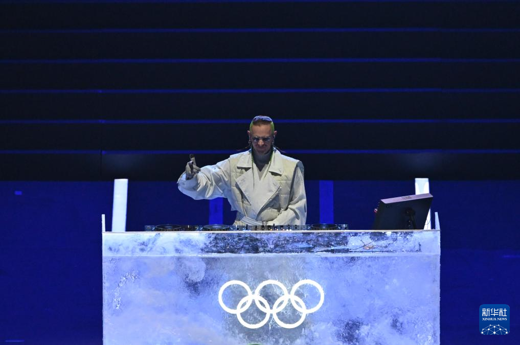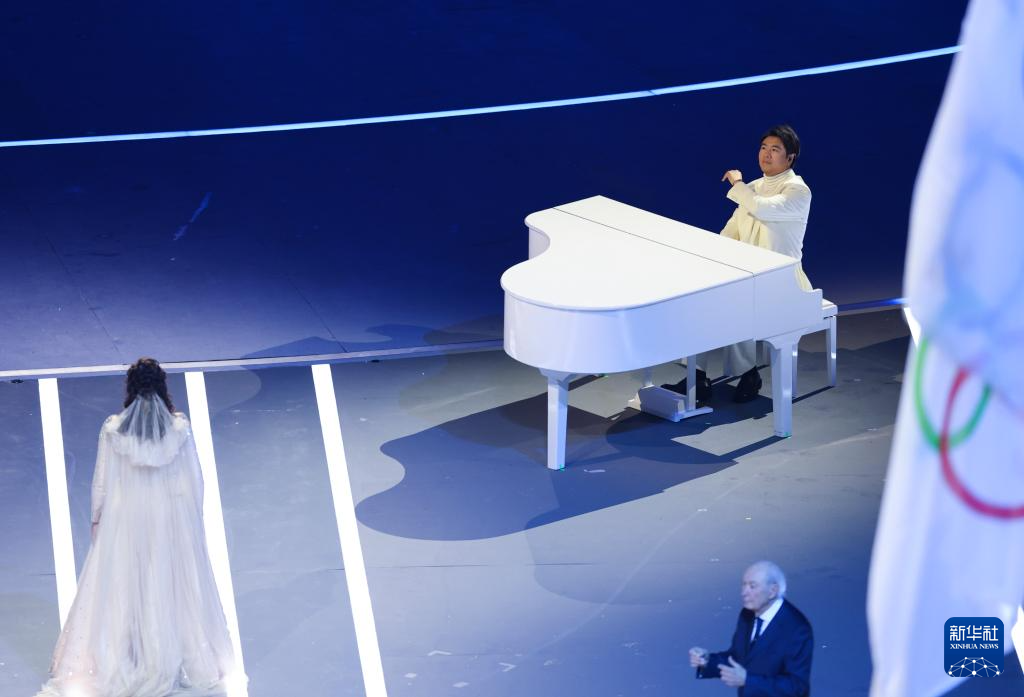2月6日,中国钢琴家郎朗(右上)在开幕式现场演奏。