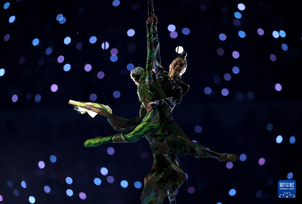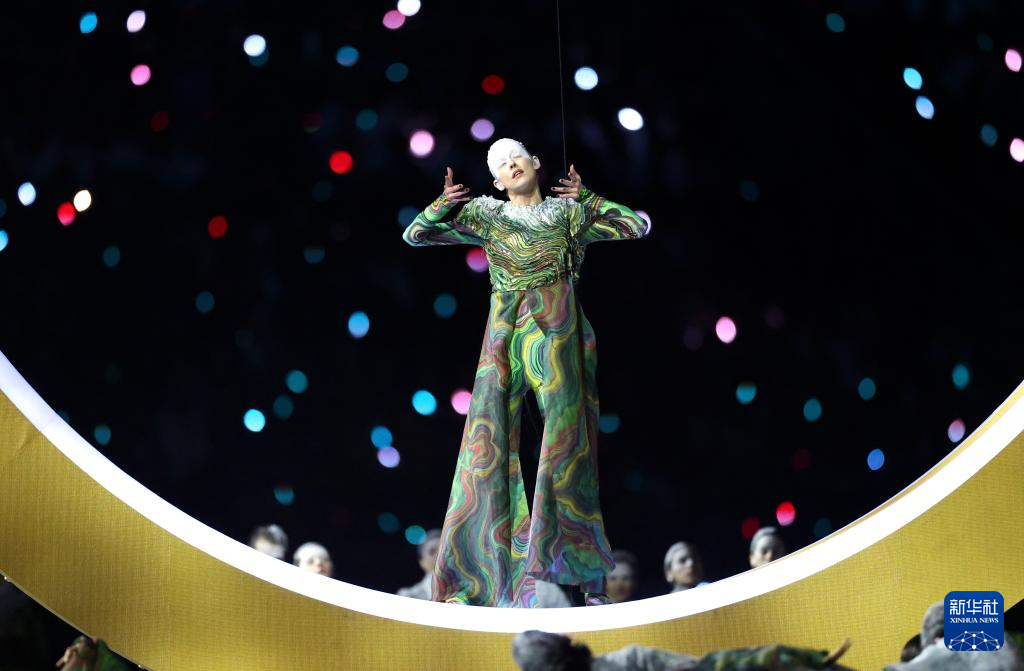 2月6日,歌手玛丽亚·凯莉在开幕式现场表演。