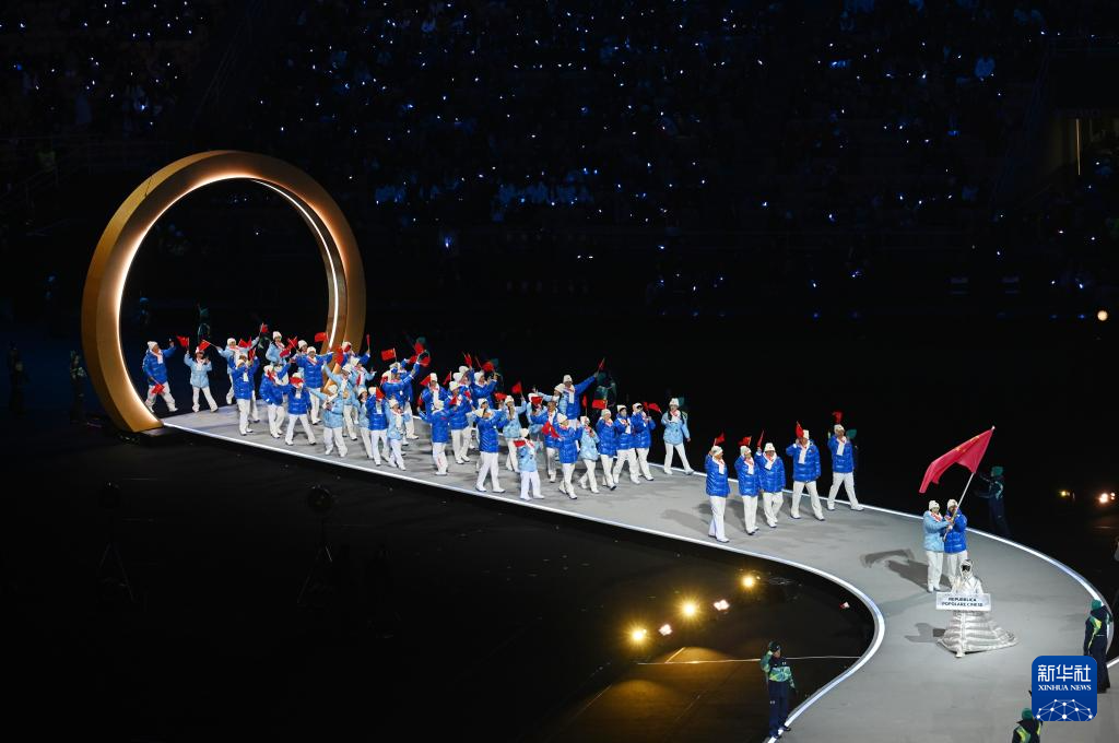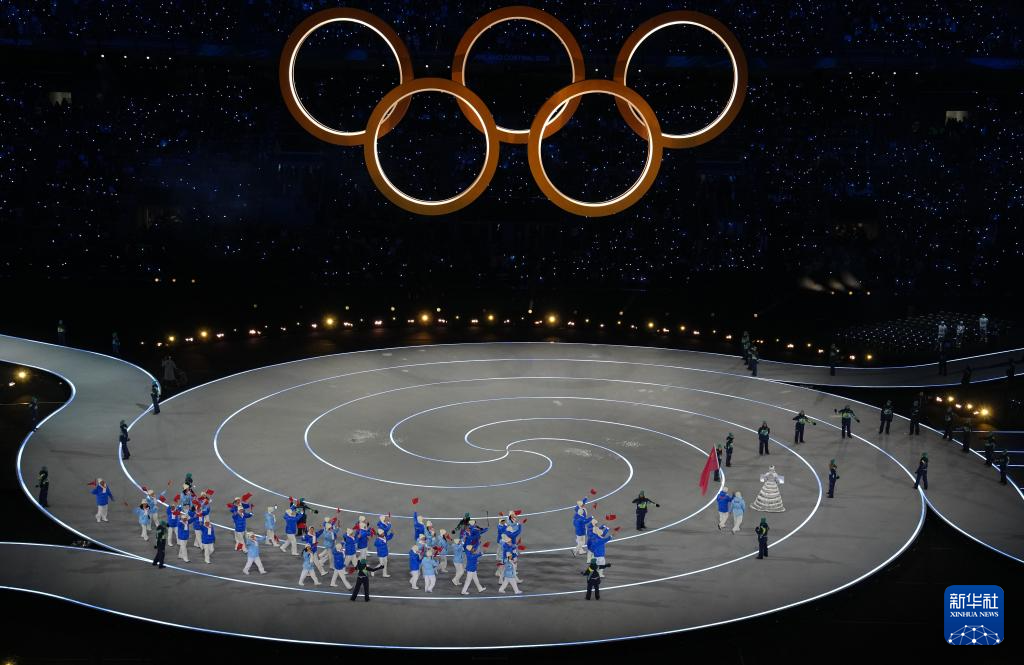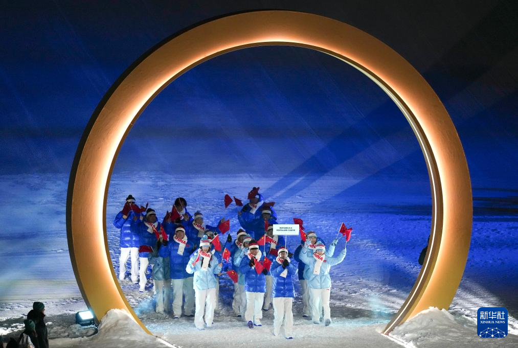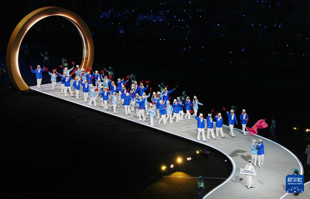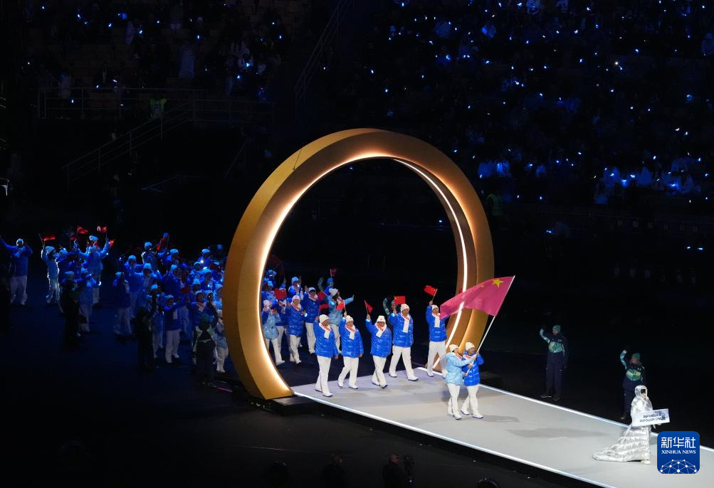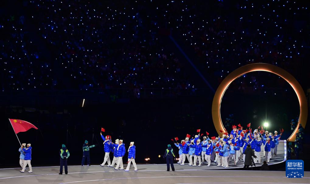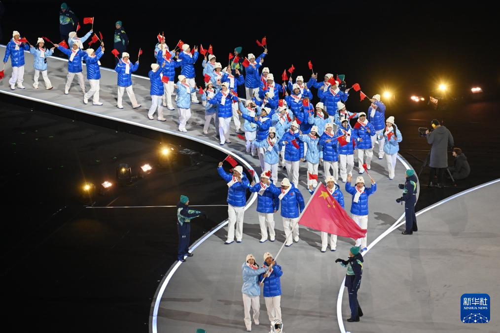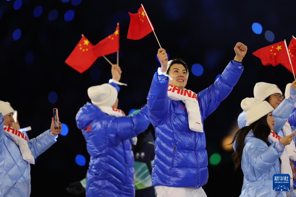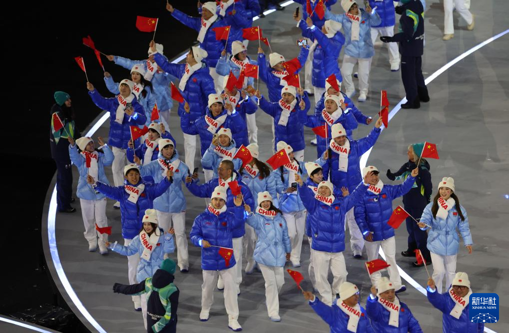 2月6日,中国体育代表团、瑞典体育代表团在开幕式现场。