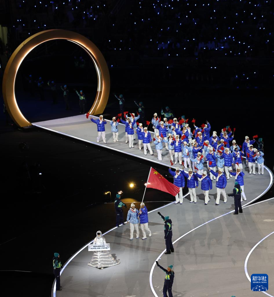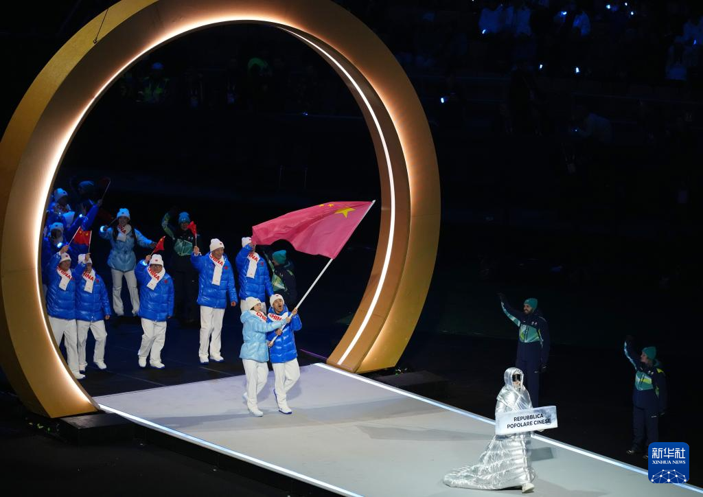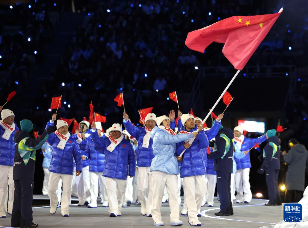 2月6日,中国体育代表团在利维尼奥参加入场仪式。