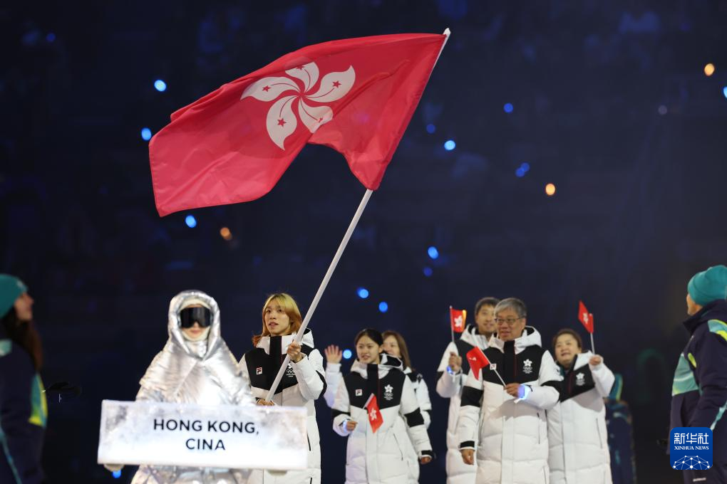 这是2月6日拍摄的开幕式上的升旗仪式。