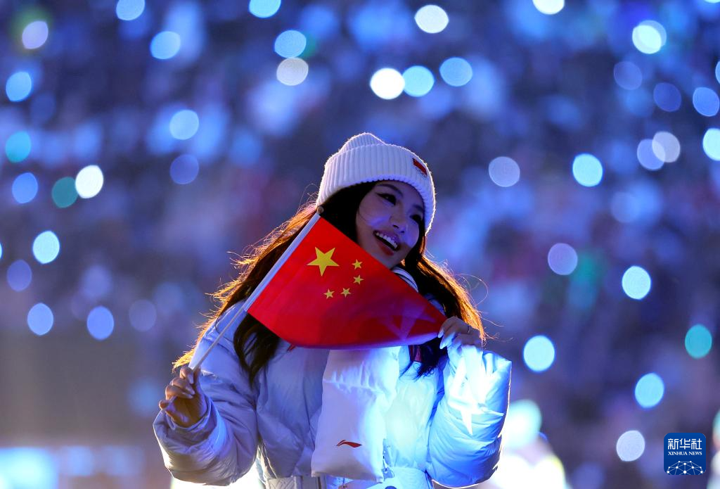 2月6日,中国体育代表团成员王诗玥在开幕式上。