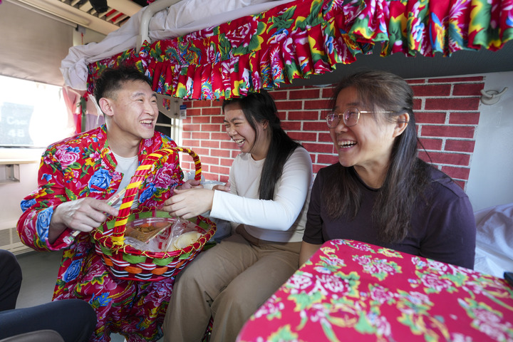 2月4日,黑龙江2026年首趟“列车大集”K7103次由哈尔滨始发,开往加格达奇。本次“列车大集”车厢悬挂火红灯笼、玉米串、红辣椒等,配以冰雪主题装饰与马年新春对联,营造出浓郁热烈的新年氛围。列车上设置专属展区,涵盖黑龙江省特色农产品以及铁路文创、“非遗”手工艺品等,旅客可现场品尝体验、扫码下单,实现车上体验、快递到家的便捷购物方式。