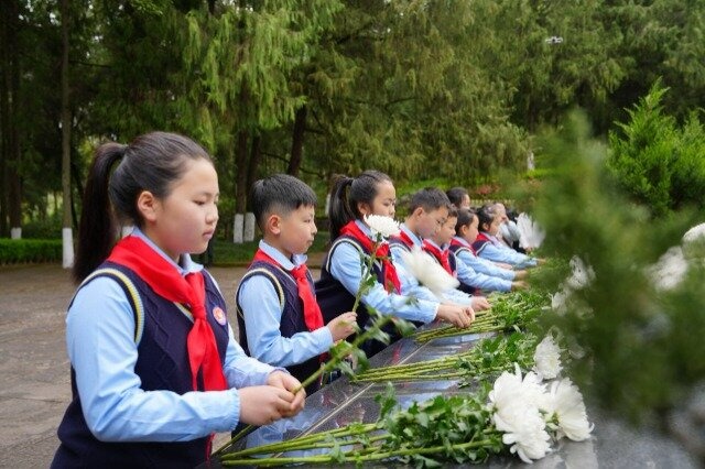 少先队员向革命烈士敬献菊花 程聪 摄