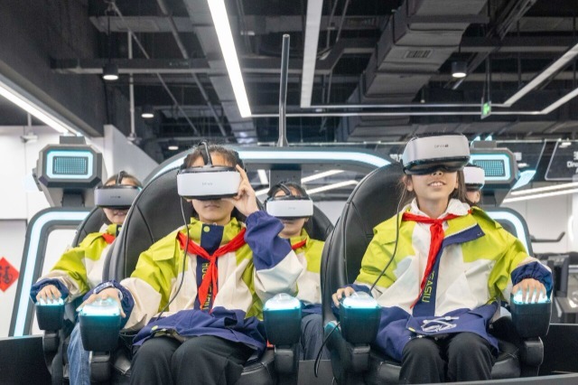 学生正在学习航天科学知识,体验航天科普项目。赵明 摄