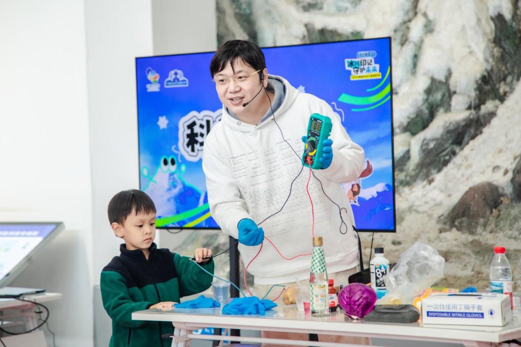 同时,一系列沉浸式科学互动备受亲子家庭追捧。从引人入胜的“元素守护者”科学魔法秀,到亲手制作分层“地球”的“手创盖亚”酸奶实验室,再到冰川馆原创科普剧《第四纪冰川的朋友们》的展演,现场欢声笑语不断。