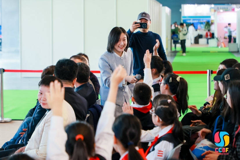 现场最激动人心的环节当属动画视频展示与互动。主持人巧妙结合书中主人公“侃侃”与“闪闪”,将现场孩子分为“侃侃而谈组”和“闪闪发亮组”。孩子们聚精会神看完《牛津英语话世界》中的“Race to the top 谁是第一名”动画视频后,主持人全程用英文围绕视频内容提问。两组孩子踊跃抢答、氛围热烈,不仅展现出良好的英语听说能力,更传递出对书中故事的喜爱,现场气氛一度达到高潮。