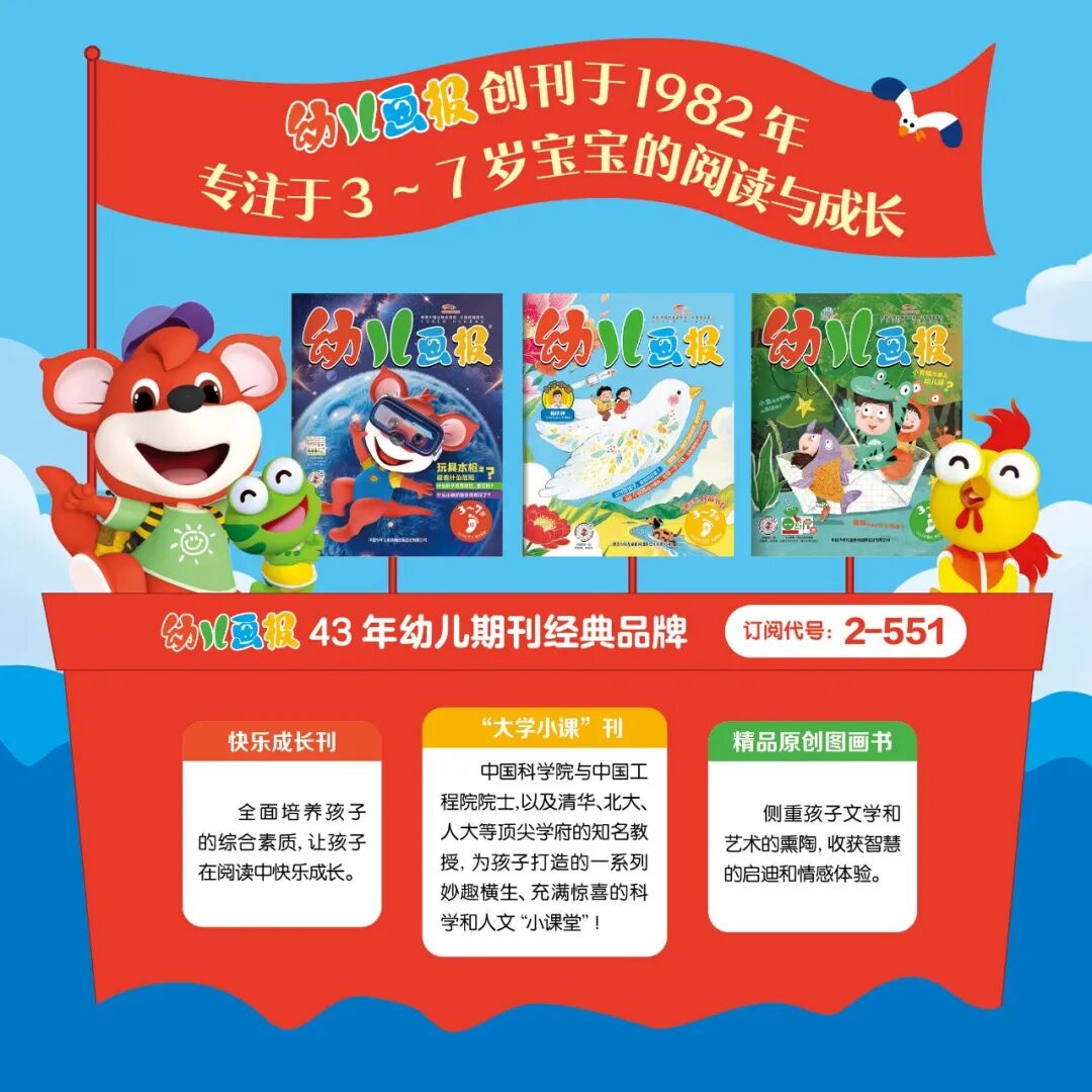 作为多次获得中国出版政府奖,被国家教育部门推荐的优秀少儿期刊,《幼儿画报》由共青团中央主管、中国少年儿童新闻出版总社主办,深耕幼儿阅读领域 43年,专为3-7岁幼儿及家长打造。期刊每月推出红版(快乐成长刊)、黄版(“大学小课”侦探号)、绿版(精品原创图画书)3期,全年36期,内容紧扣健康、语言、社会、科学、艺术五大发展领域,通过故事、儿歌、互动游戏等形式激发阅读兴趣,每期附赠贴纸、手工材料包及音视频资源,成为家校社协同育人的优质载体。