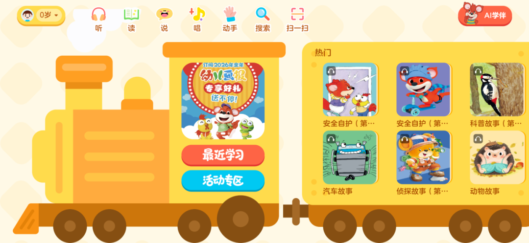 今年,中少总社联合高等教育出版社打造了“红袋鼠爱悦读APP”。这款APP专为赋能纸刊多元化服务而生,是0-6岁婴幼儿家庭的智慧育儿伙伴,以“科学启蒙+趣味互动+亲子链接”为核心,涵盖了家庭场景下婴幼儿听、读、说、唱、动手等多维度的功能设计。