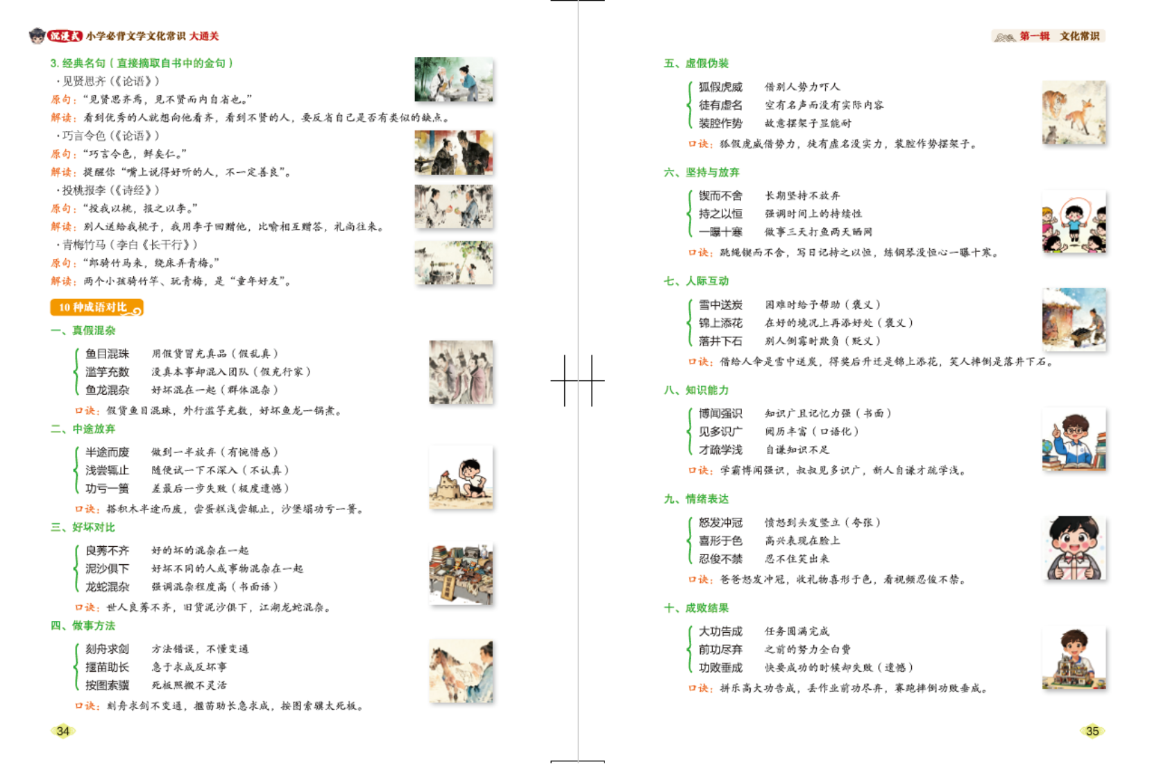 解释说明:将“鱼目混珠”“滥竽充数”“鱼龙混杂”等易混成语放在一起对比讲解,并通过选择题、编故事等题目引导孩子灵活运用,彻底告别张冠李戴。