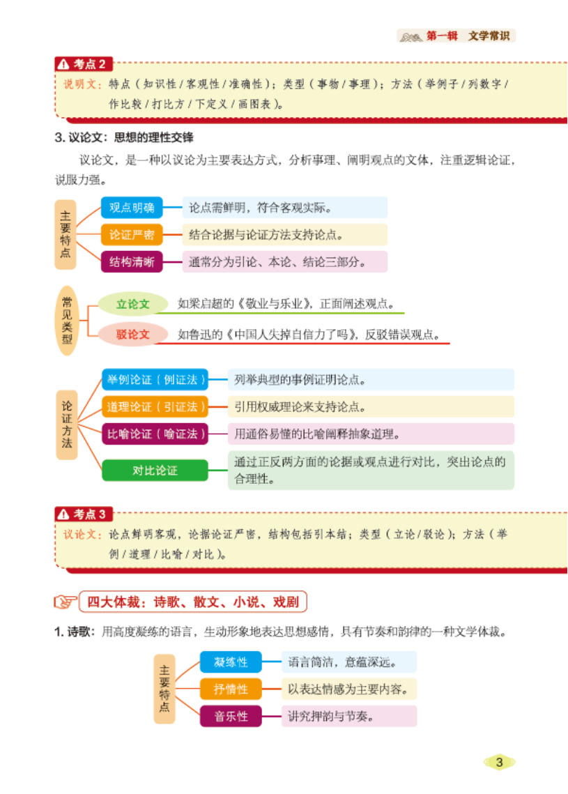 解释说明: 学完立刻练,题目紧扣刚学的“记叙文六要素”“论证方法”等考点,即时检验学习效果,巩固记忆。