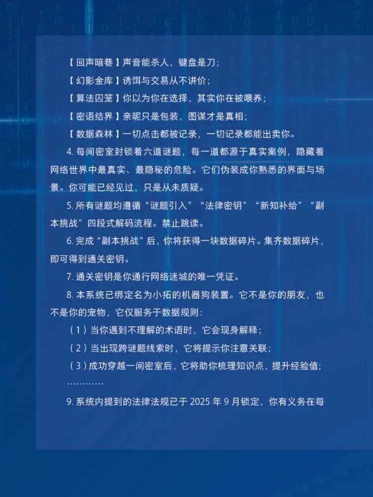 它用青少年喜欢的方式“对话”:通过密室闯关、解锁谜题的沉浸式场景,将抽象的法律条款和网络安全知识转化为一道道待解的谜题。在这里,青少年不是被保护者,而是解决危机的“主动破局者”,能够更深刻地理解风险何在以及如何规避。