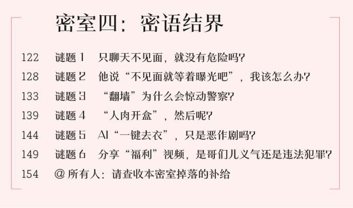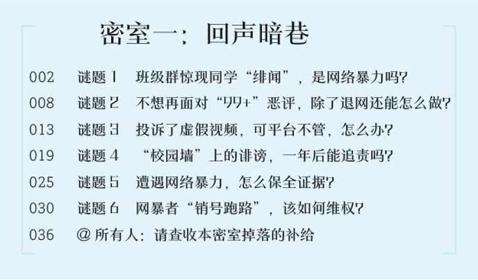 它扎根于真实的网络环境:书中的30道谜题源于真实发生的案例,涉及网络暴力、电信网络诈骗、网络沉迷、隔空猥亵、信息安全等五大青少年高发、易发的风险领域,覆盖了生活中可能遇到的大多数风险场景。